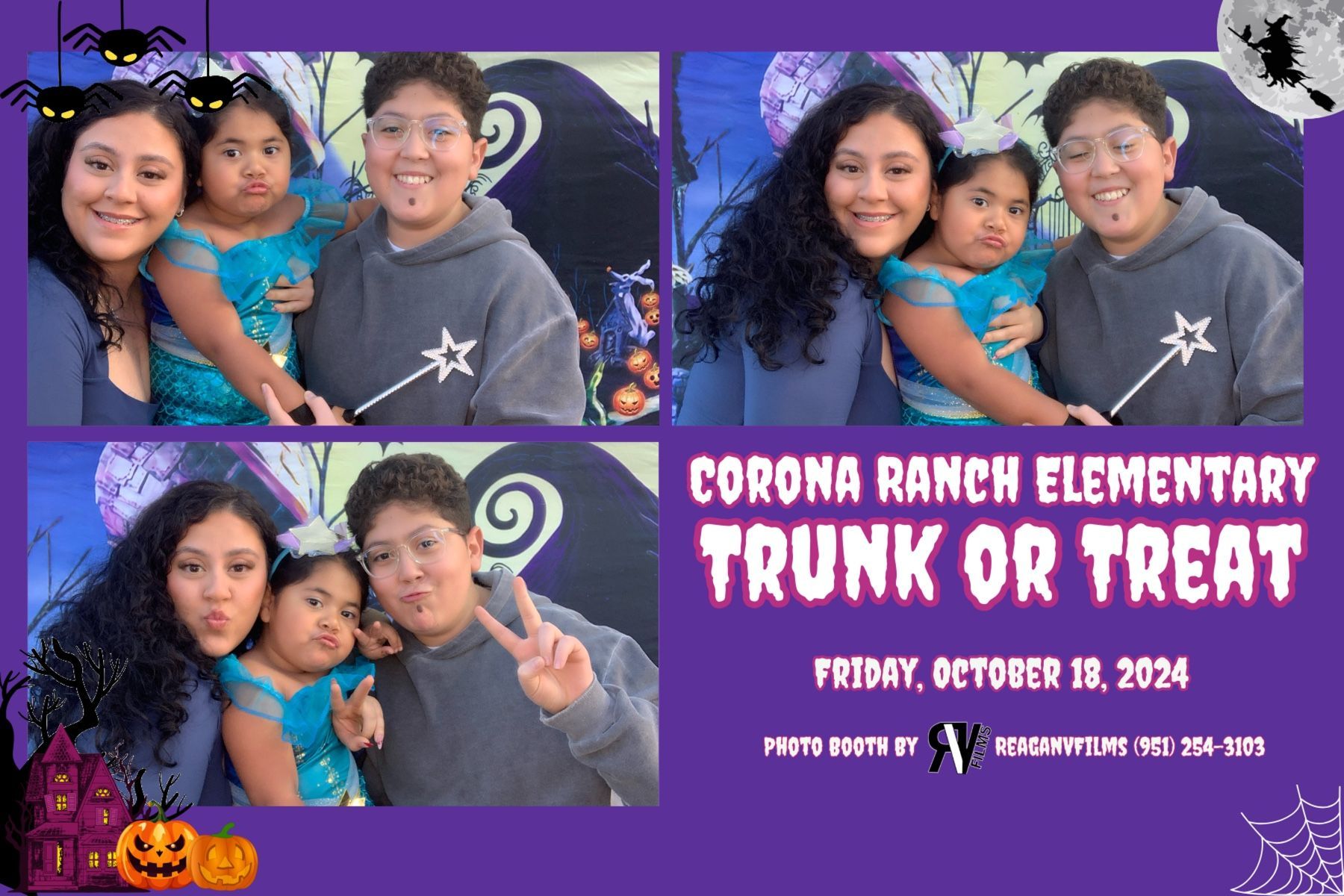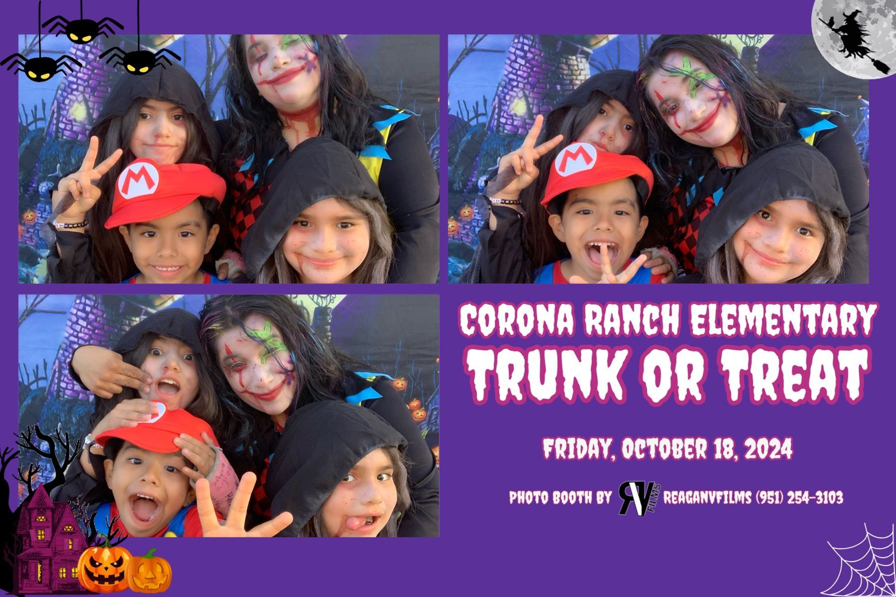 We had a spook-tacular time providing our print photo booth rental for a Trunk or Treat event at Corona Ranch Elementary, a CNUSD school right here in Corona, California. Parents and students lined up all evening to jump in front of the camera and show off their silliest smiles and most creative costumes under the spotlight.